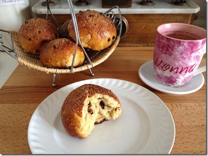 …terminata la lievitazione spennelliamo i panini con tuorlo e un goccio di latte e spolverizziamo con dello zucchero di canna…
